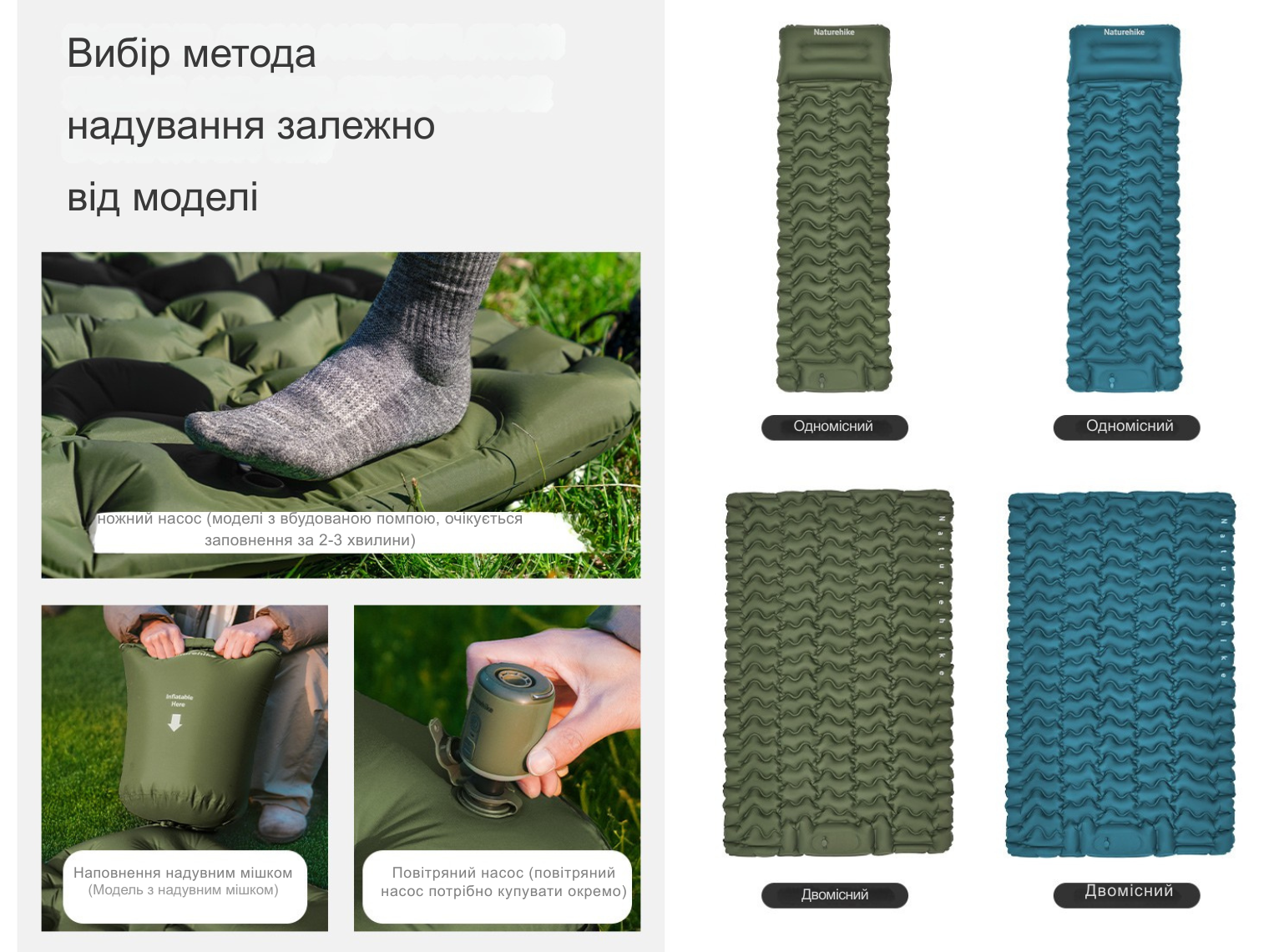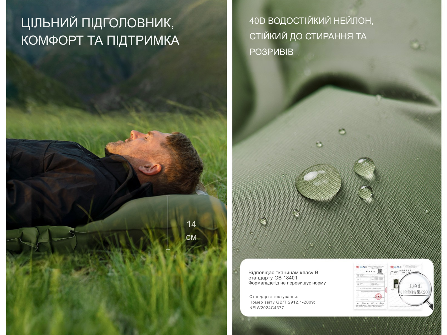 Матрац виготовлений з нейлону 40D з TPU-покриттям. Матеріал несприйнятливий до намокання, появи зачіпок та забруднень. Висока щільність нейлону дозволяє виробу витримувати навантаження до 250 кг.
